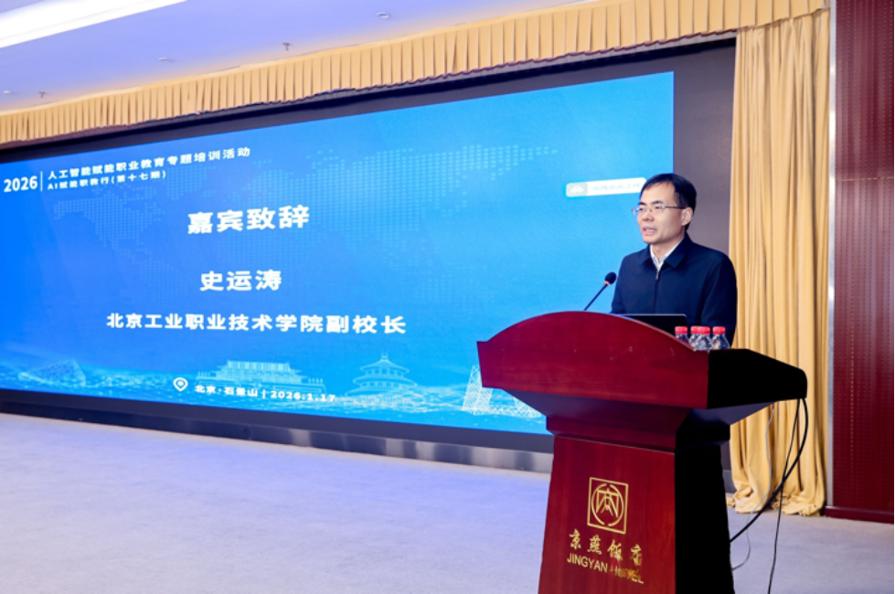 2026年1月17日,“人工智能赋能职业教育专题培训活动——AI赋能职教行(第十七期)”在北京京燕饭店举办。本次活动由我校承办,以“智创职教新生态,擎动双高向未来”为主题,汇集了职业教育领域的相关领导、专家学者、院校代表及企业界同仁,共同探讨人工智能驱动职业教育高质量发展的实践路径与创新模式。校党委常委、副院长史运涛出席活动。