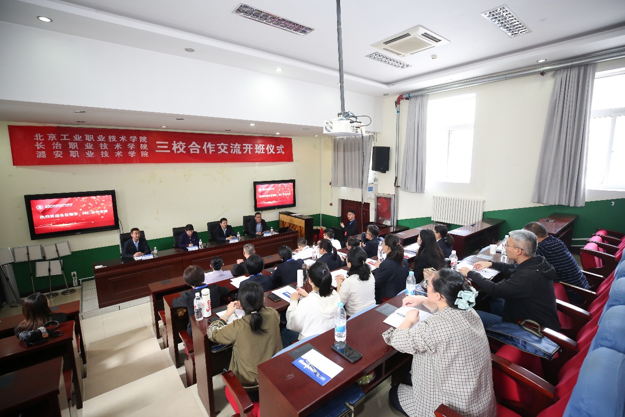 周燕对学校基本情况及本次培训内容安排进行了详细介绍。她强调,系列交流合作项目乃是贯彻落实党中央开展革命老区重点城市对口合作重大战略部署以及《北京市与长治市对口实施方案(2022 - 2026 年)》的积极尝试,亦是京晋职业教育对口合作的一项重要活动。潞安职业技术学院副校长杨小学代表两所学校,对学校精心筹办三校交流活动表达了诚挚感谢,并对参训学员提出了殷切期望与具体要求。