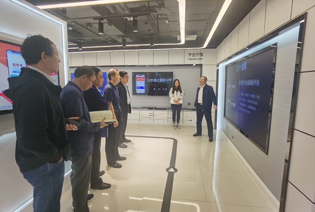 随后,走访团队来到了北京市中小企业公共服务平台。走访团队参观了中小企业服务平台展厅,总经理刘亮为大家介绍了平台情况、北京市中小企业情况和平台服务中小企业情况。
