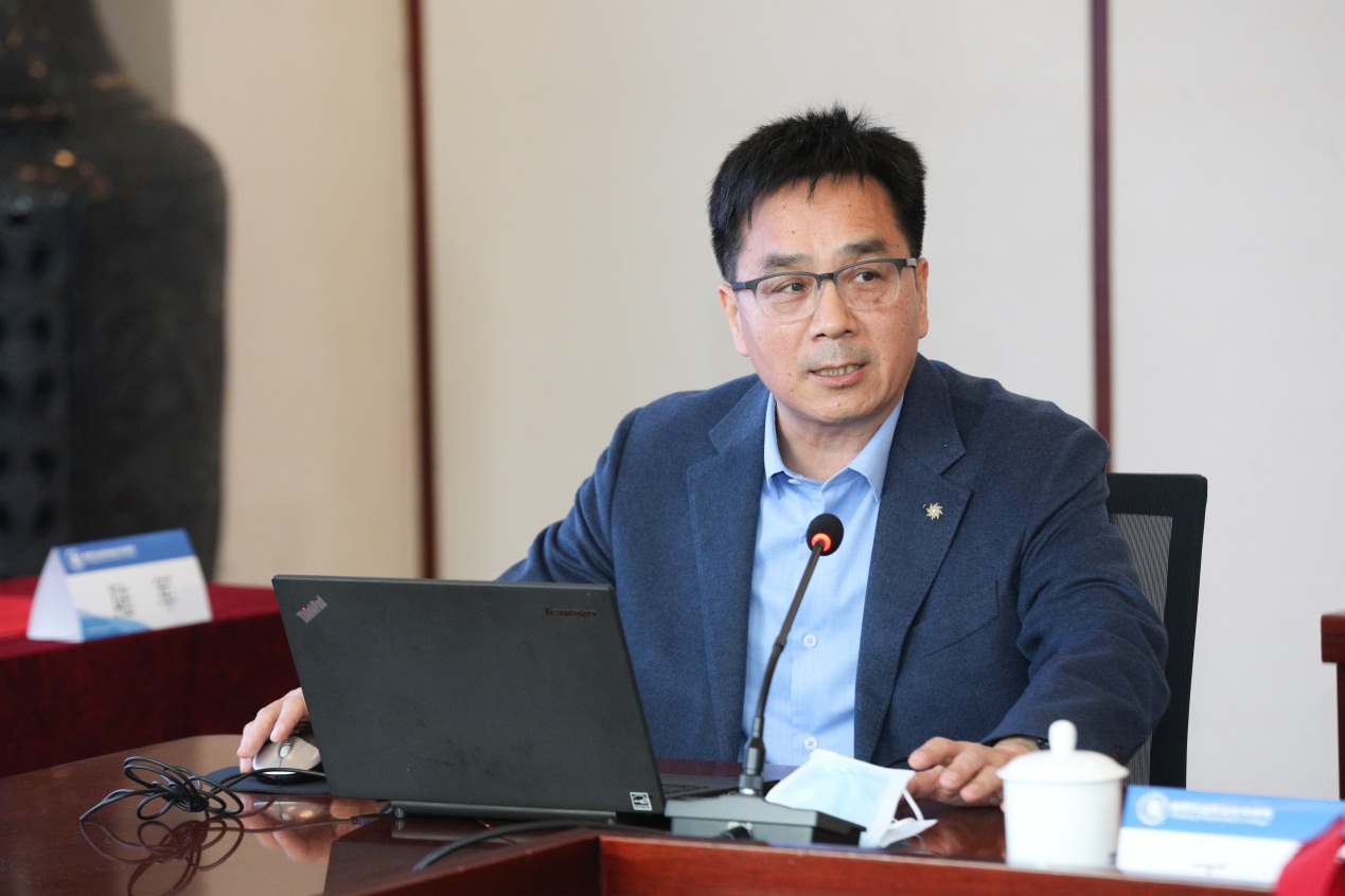 刘兰明副校长代表学校做了“十年强军育才接力路、万千官兵培训双拥情”专题汇报。他首先介绍了学校基本情况和“强军育才工程”十年硕果。接着他从全方位资源支持、优质师资团队、针对性的培训项目、课证融通服务官兵发展、拓宽边界提供增值服务等方面介绍了学校“强军育才工程”的特色和亮点。最后他提出了新一代信息技术培训、拓宽线上线下融合培训项目等方面的工作建议和设想。