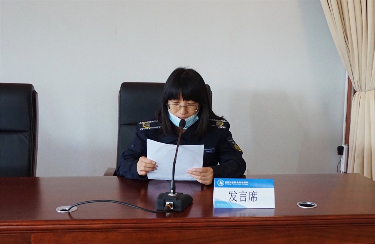 北京工业职业技术学院周燕副校长代表北工院全体教职工,对参加此次培训的朝阳、平谷、延庆的学员们表示热烈的欢迎,对市应急管理局领导、各专业部门以及区县领导给予北工院培训工作的支持与信任表示感谢。周校长强调,培训期间学员们需严格遵守培训的纪律规定及学校的校规校纪,同时希望学员们对此次培训过程中存在的不足之处提出指正意见,学校会全力以赴做好教学工作和服务管理工作。