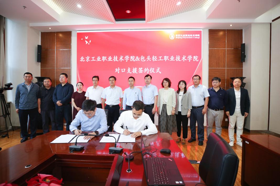 仪式上,史运涛与管建慧代表双方签署《北京工业职业技术学院与包头轻工职业技术学院对口帮扶合作协议》。根据协议,两校将遵循“优势互补、资源共享、对口帮扶、共同发展”原则,聚焦“五金”建设,重点围绕学科专业建设、师资队伍建设、人才培养、科学研究、国内外合作与交流等方面开展支援指导帮助。