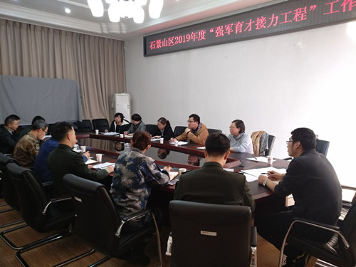 3月12日,2019年“强军育才”接力工程启动协调会在石景山区民政局召开,石景山区民政局、北工职院等学校以及各驻区部队参加了会议。