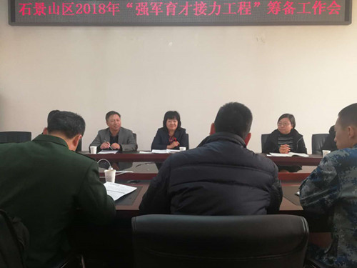 3月9日,2018年“强军育才”接力工程启动协调会在石景山区民政局召开,石景山区民政局、北工职院等学校以及各驻区部队参加了会议。