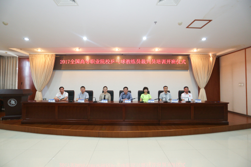 全国高等职业院校乒乓球教练员、裁判员培训班开班仪式于2017年6月9日上午9:00我校报告厅举行。